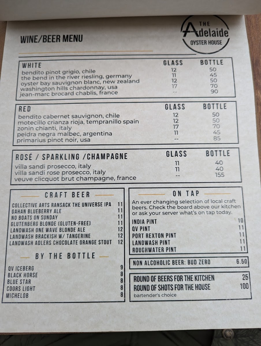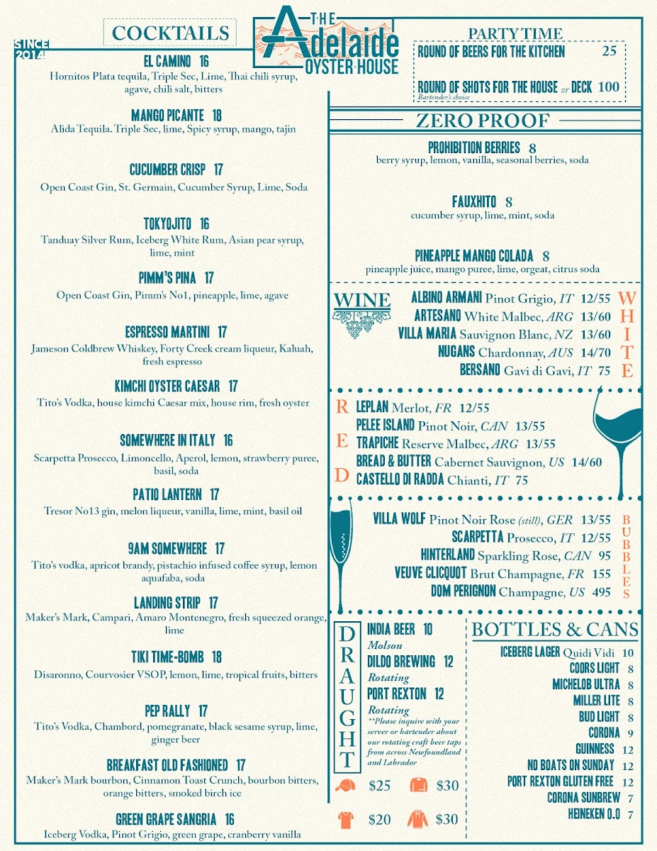 The Adelaide Oyster House Menu